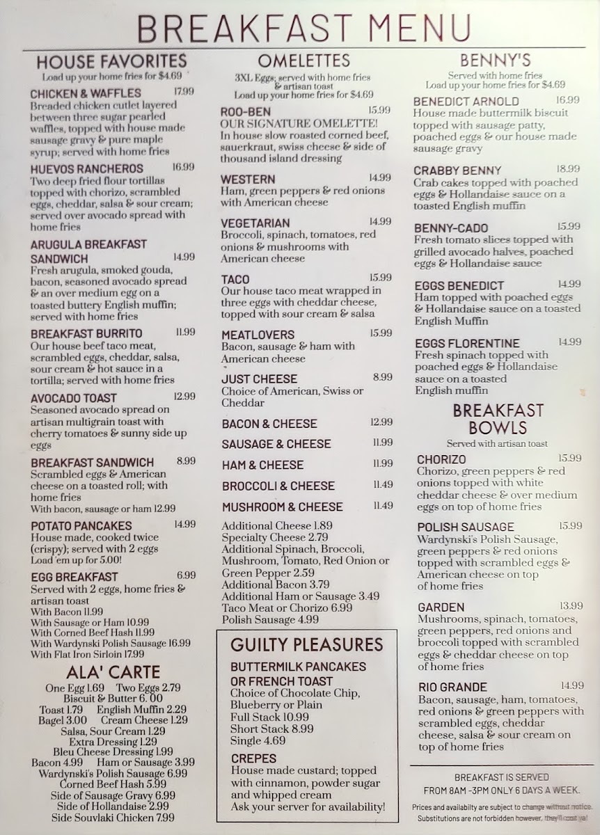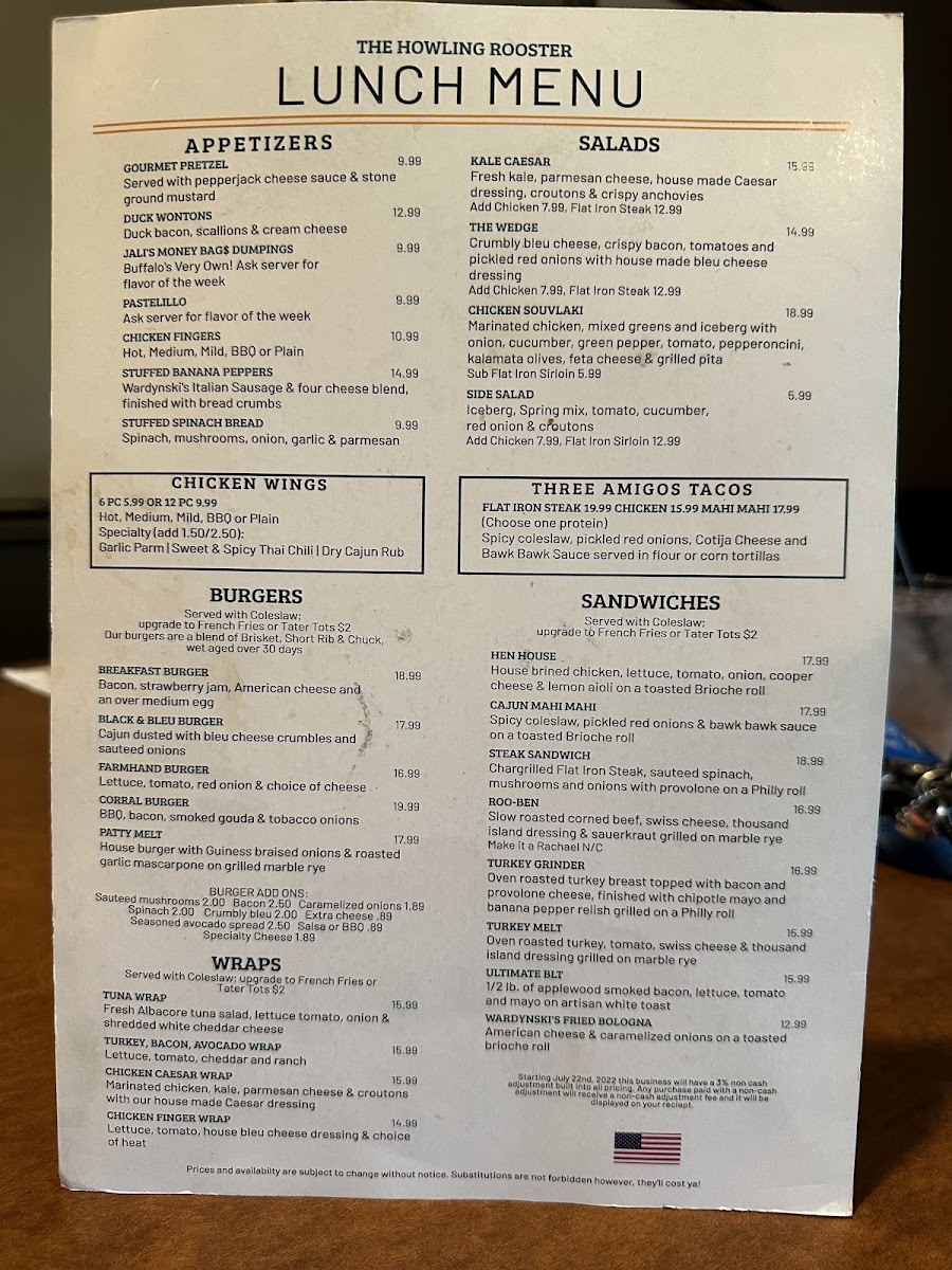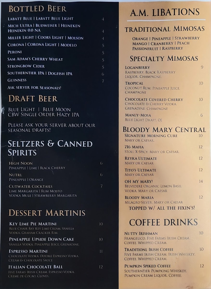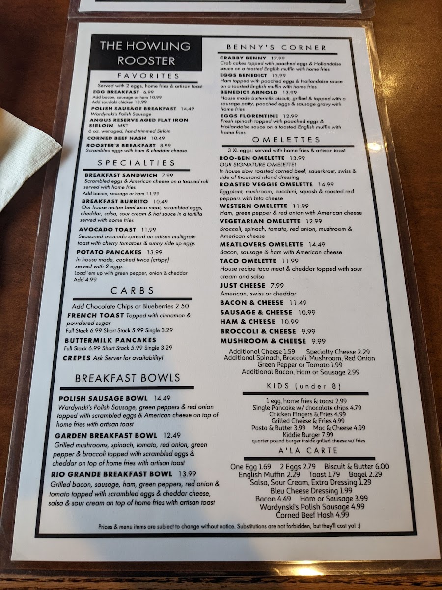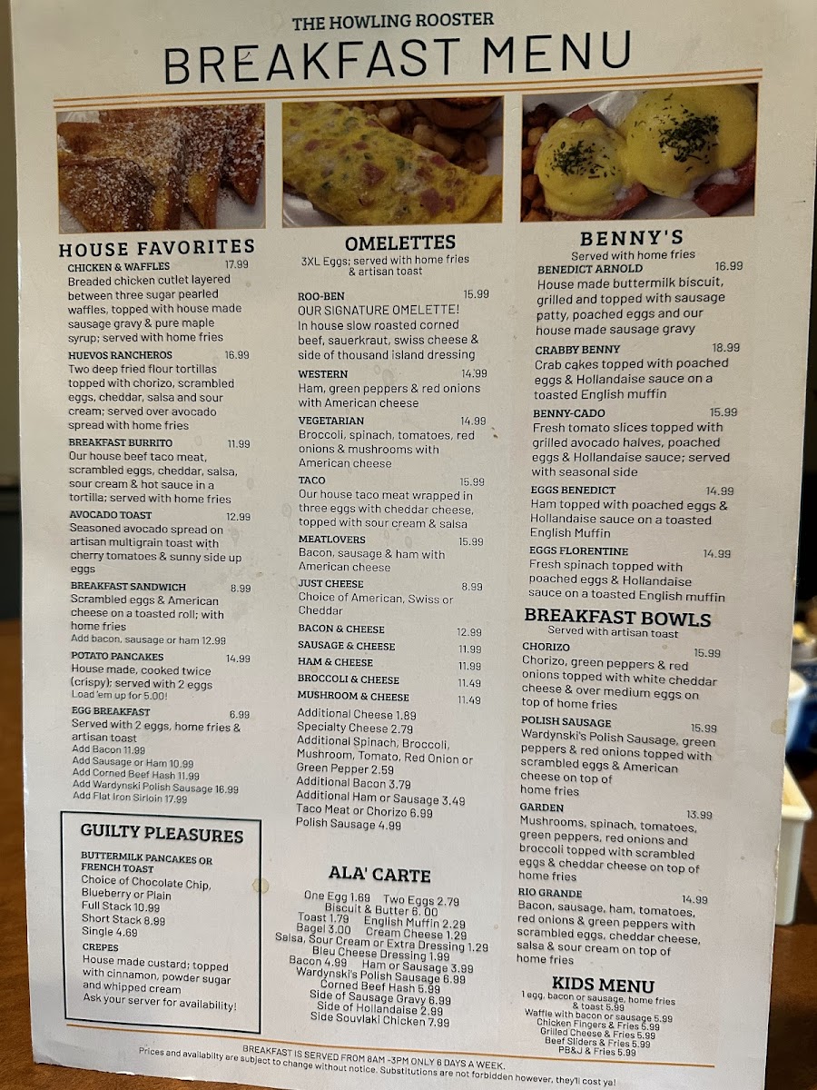 Looking for a spot where great food and good vibes come together? Look no further than The Howling Rooster Restaurant & Bar Menu. Situated in the heart of Kenmore, NY, this cozy yet vibrant restaurant serves up a delicious blend of comfort food and unique twists on your favorite dishes. From hearty breakfast options to mouthwatering entrees, there’s something for everyone to enjoy. Whether you're in the mood for a savory burger, a fresh salad, or one of their signature cocktails, The Howling Rooster knows how to satisfy your cravings. Their friendly, laid-back atmosphere makes it the perfect place to relax with friends, family, or even a date night. So, dive into their menu and discover the perfect bite to go with your drink of choice!